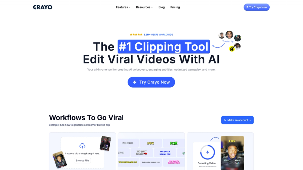 Crayo est une plateforme tout-en-un d'édition vidéo basée sur l'IA, conçue pour créer rapidement des vidéos virales. Elle offre des outils pour générer des voix off IA, ajouter des sous-titres engageants, optimiser le gameplay et bien plus encore.