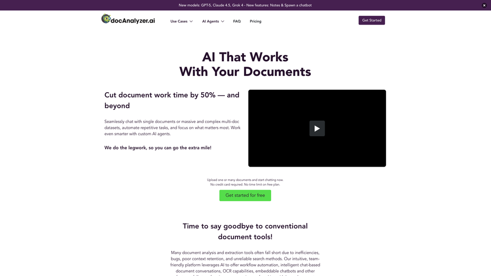 docAnalyzer.ai est une plateforme d'IA conçue pour interagir intelligemment avec vos documents. Elle permet de converser avec des documents uniques ou des ensembles de données complexes, d'automatiser les tâches répétitives et de se concentrer sur l'essentiel. Elle offre une alternative avancée à d'autres outils d'analyse de documents grâce à ses capacités d'IA.
