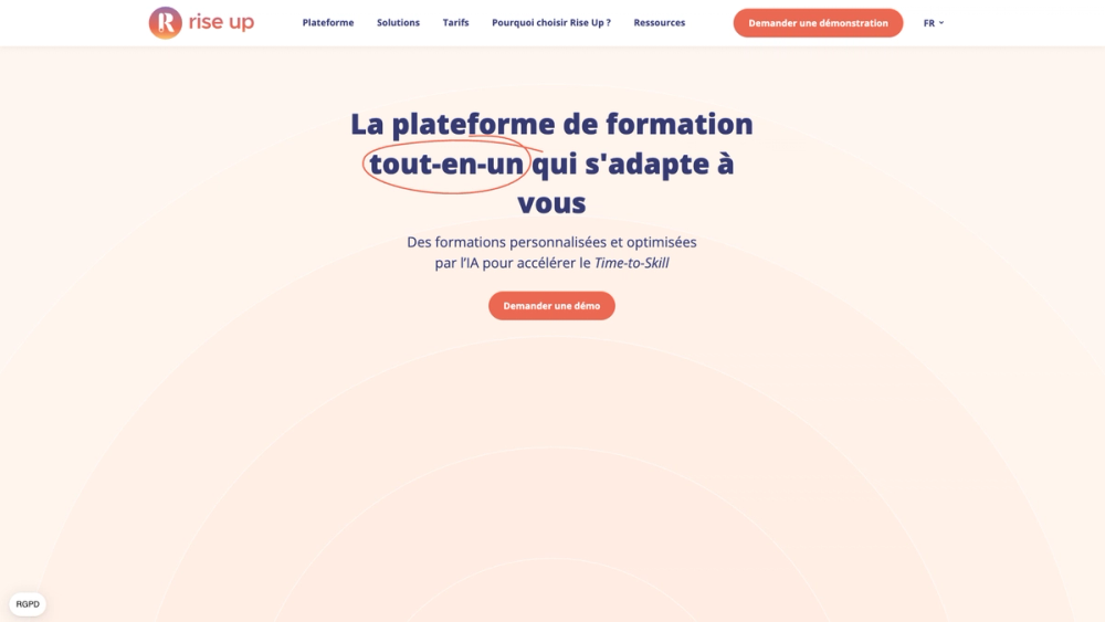 Rise Up est une plateforme de formation complète qui combine LMS (Learning Management System), LXP (Learner Experience Platform) et outils auteur, le tout enrichi par l'IA. Elle permet aux entreprises d'orchestrer, de diffuser et de mesurer l'apprentissage de leurs collaborateurs, clients et partenaires externes de manière centralisée et intuitive.