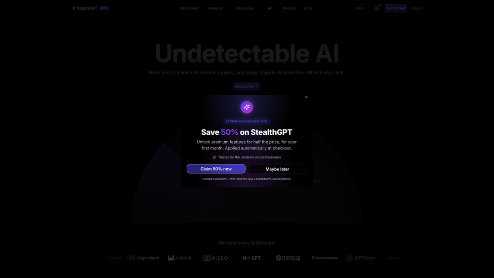 StealthGPT est un outil d'IA conçu pour humaniser le contenu généré par l'IA, le rendant indétectable par les détecteurs d'IA. Il permet de créer des articles, des rapports et des blogs avec un style d'écriture authentique et des citations appropriées.