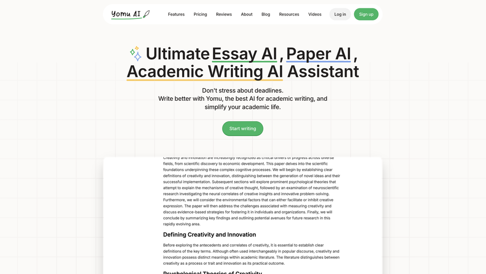 Yomu AI est un assistant d'écriture académique basé sur l'intelligence artificielle, conçu pour aider les étudiants et les chercheurs à rédiger de meilleurs essais, articles et thèses. Il simplifie le processus d'écriture en offrant des outils pour la recherche, la citation, la vérification du plagiat et l'amélioration du texte.